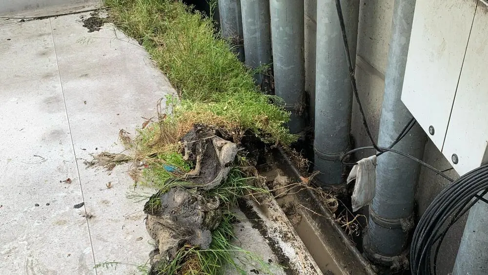 - Verschmutzungen oder Pflanzen wachsen in der Rinne