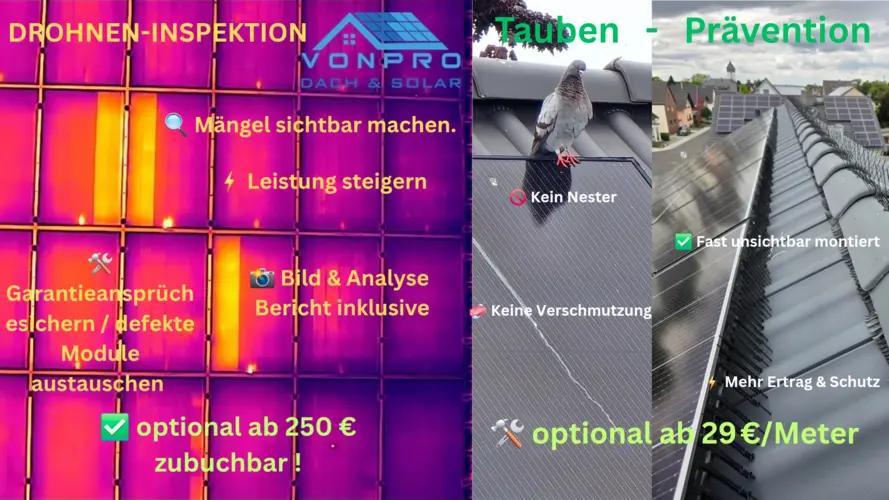 Taubenprävention auf dem Dach Schäden an PV-Anlagen vermeiden Netze Spikes Reinigung