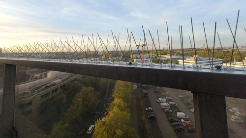Eine dezente und effektive Alternative zu Spikes – ideal für Fassadenbereiche. Die dünnen Drähte verhindern, dass Tauben Halt zum Landen finden.